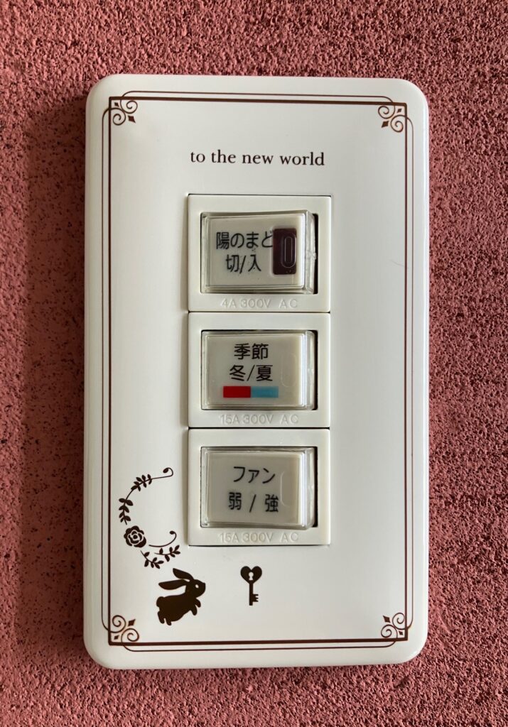 ※冒頭の操作スイッチの化粧プレートは、お客様の好みで交換されています。標準品は無地になりますので、ご承知おきください。