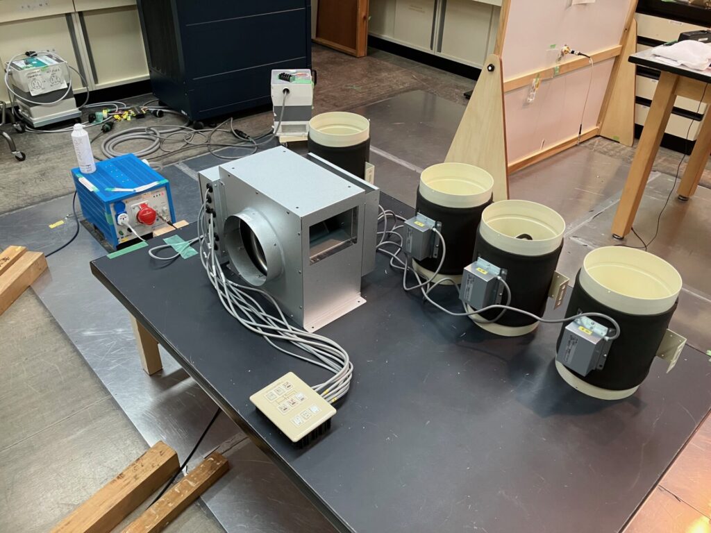 新たに設計し、試作したファンボックスについて、電磁波ノイズの発生状況を確認するために静岡県浜松工業技術支援センターで試験を行いました。