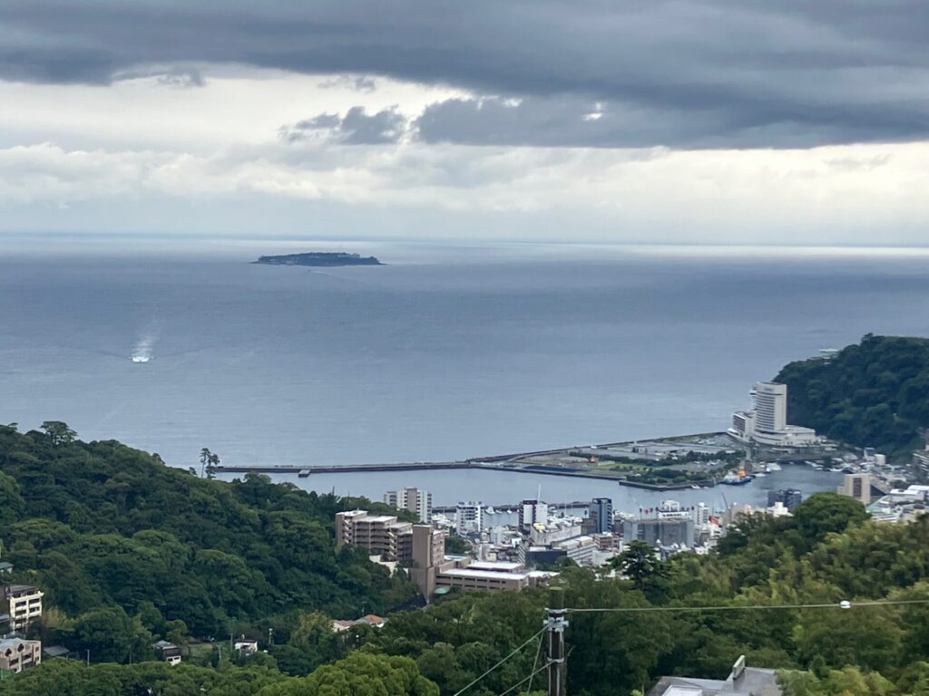 現場は熱海市街が一望できる高台にあります。晴れてたら最高なんだけど、残念ながら雨。