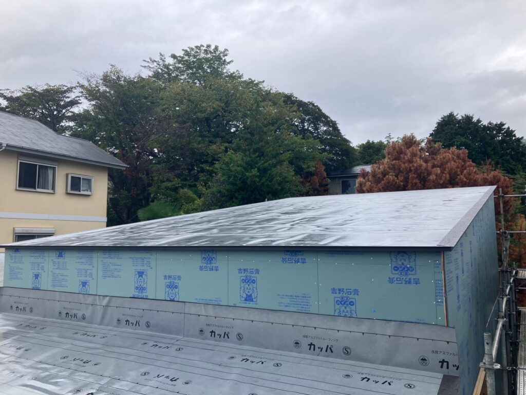 集熱パネルを設置する予定の屋根もびしょ濡れで登ることができませんでした。