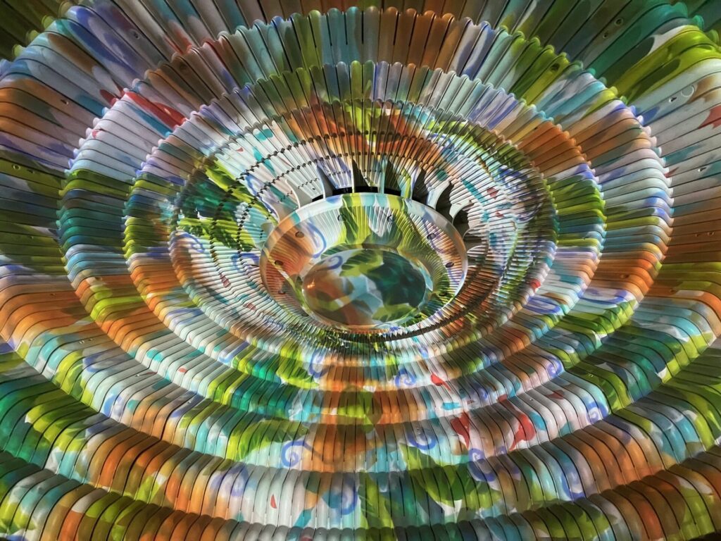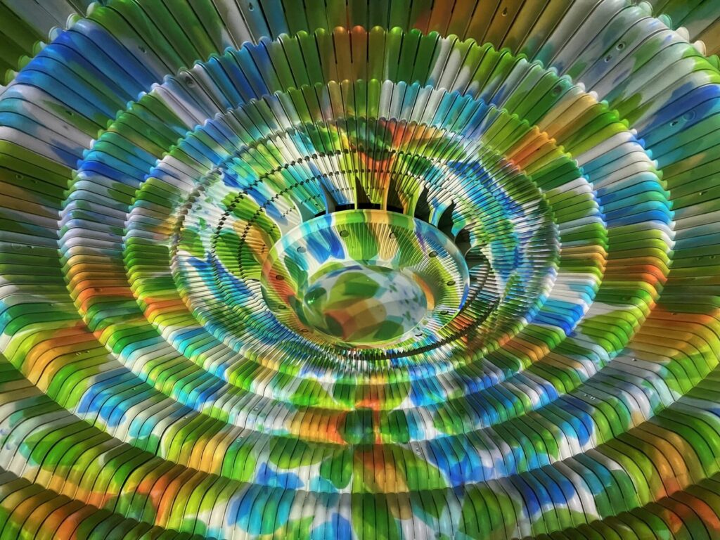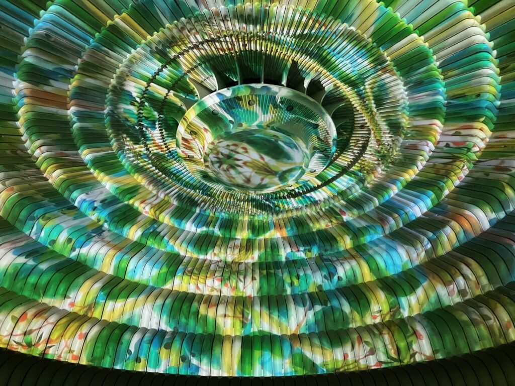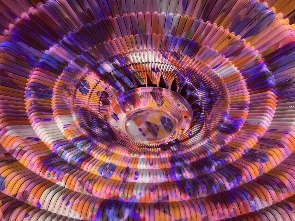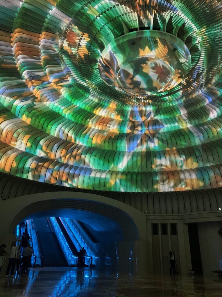 模様と色がどんどん変化して万華鏡の中にいるみたいで、とても綺麗でした。ホール内にあるソファーに座って天井を眺めていると「許されるならここに住みたいかも…」って思ってしまった!