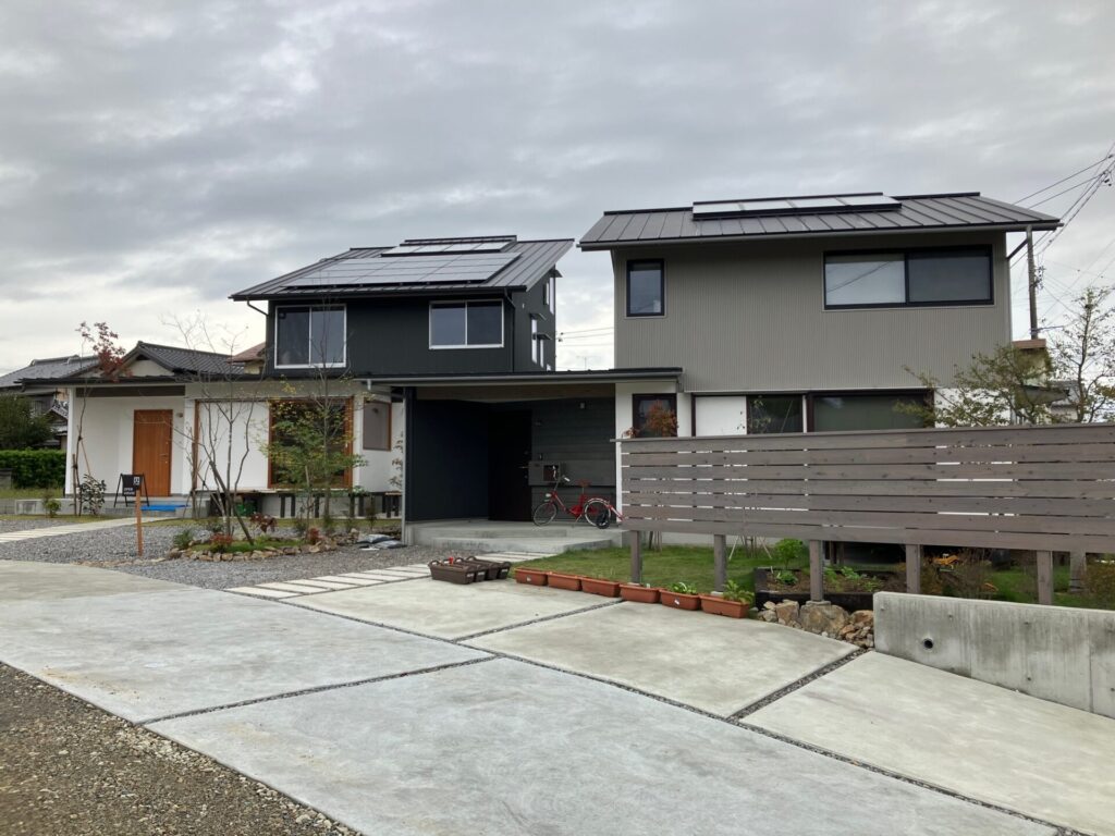 右は今年の春に完成して約半年間モデルハウスとして公開していた建物ですが、お施主さんが無事に引越しされて新しい生活をはじめられたとの事。そして左が今回完成したお家です。