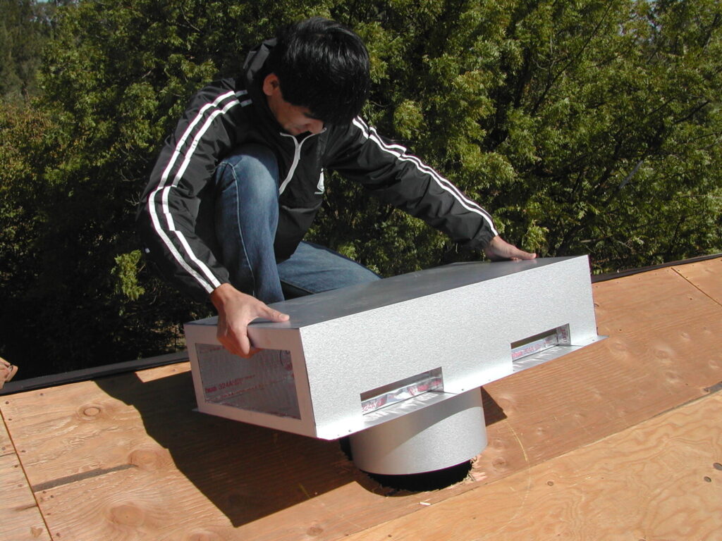 私が最初の外付け棟ダクトをつくってから26年が経ちました。このダクトが登場してからは小屋裏に設置する半円形棟ダクトはほとんど使われなくなり、こちらにシフトしていきました。施工が楽になるという事は、施工コストを下げる事につながります。現場の施工手間を1つでも減らせるようにする事は、私の設計のポリシーであり、陽のまどの部材にもしっかり受け継がれている考え方なのです。