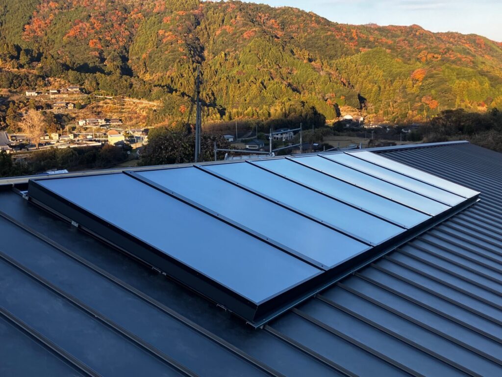 佐那河内村の家は、徳島市の工務店(有)高源組さんの設計、施工で建築されています。1年ほど前になりますが「お施主様が「びおソーラー」の導入を希望している」というお問合せがあり、私の方でシステム計画の対応をさせていただきました。その後にびおソーラーの販売が終了となってしまった為、そのまま陽のまどとして引き継がせていただいたのですが、これまでにやった事のない納まりと部材設計を経験することになりました。