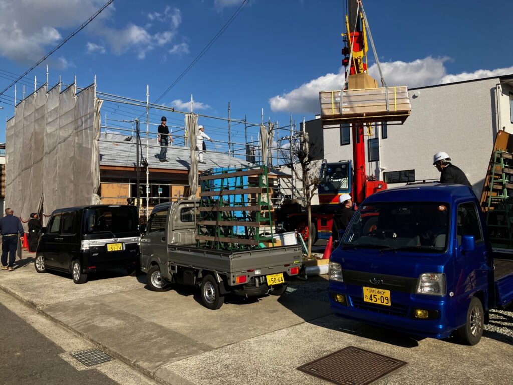 2026年最初の「青トラ訪問記」は和歌山県です。昨年の最後の出張が徳島県と和歌山県でしたから、これで3カ月連続で和歌山に来たことになります。和秋建設さんが和歌山市内で建築中の「新高町の家」に陽のまど部材をお届けしました。